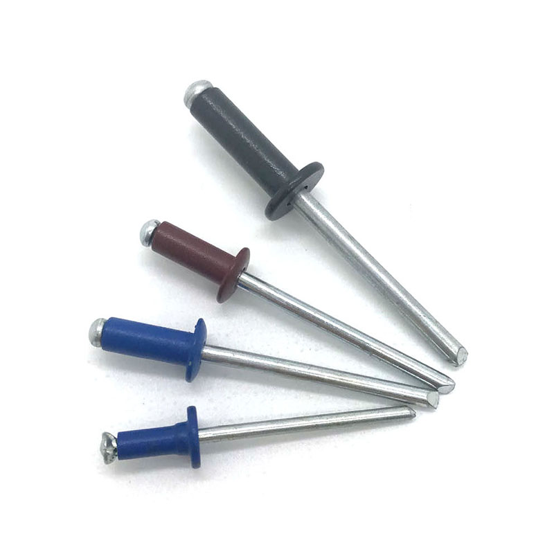 Kepala warna yang dicat rivet buta aluminium digunakan secara meluas dalam automotif, pembinaan kapal, pembinaan, jentera, tenaga solar, perabot, peralatan elektrik, kereta api berkelajuan tinggi dan industri penerbangan.