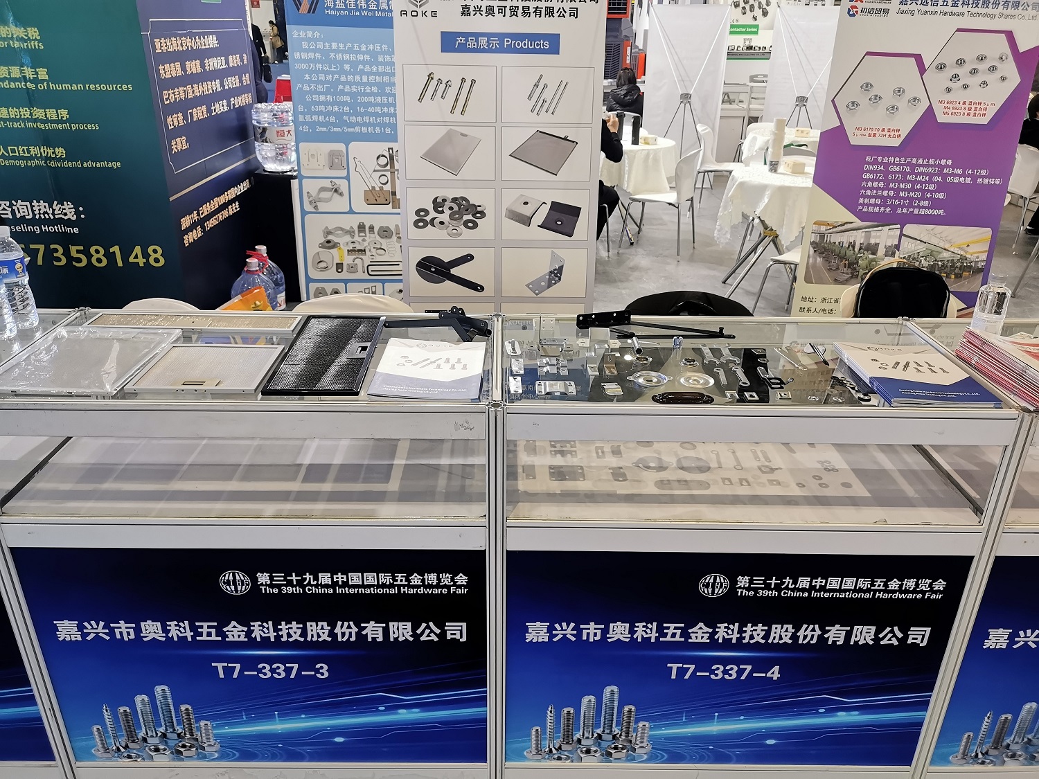 Jiaxing Aoke akan hadir sepanjang keseluruhan pameran. Kami mempamerkan bahagian dan pengikat bercop berkualiti tinggi yang menampilkan proses pembuatan ketepatan, rintangan kakisan yang sangat baik dan kekuatan tinggi, sesuai untuk pelbagai aplikasi termasuk pembuatan perabot, pemasangan industri dan peralatan mekanikal.